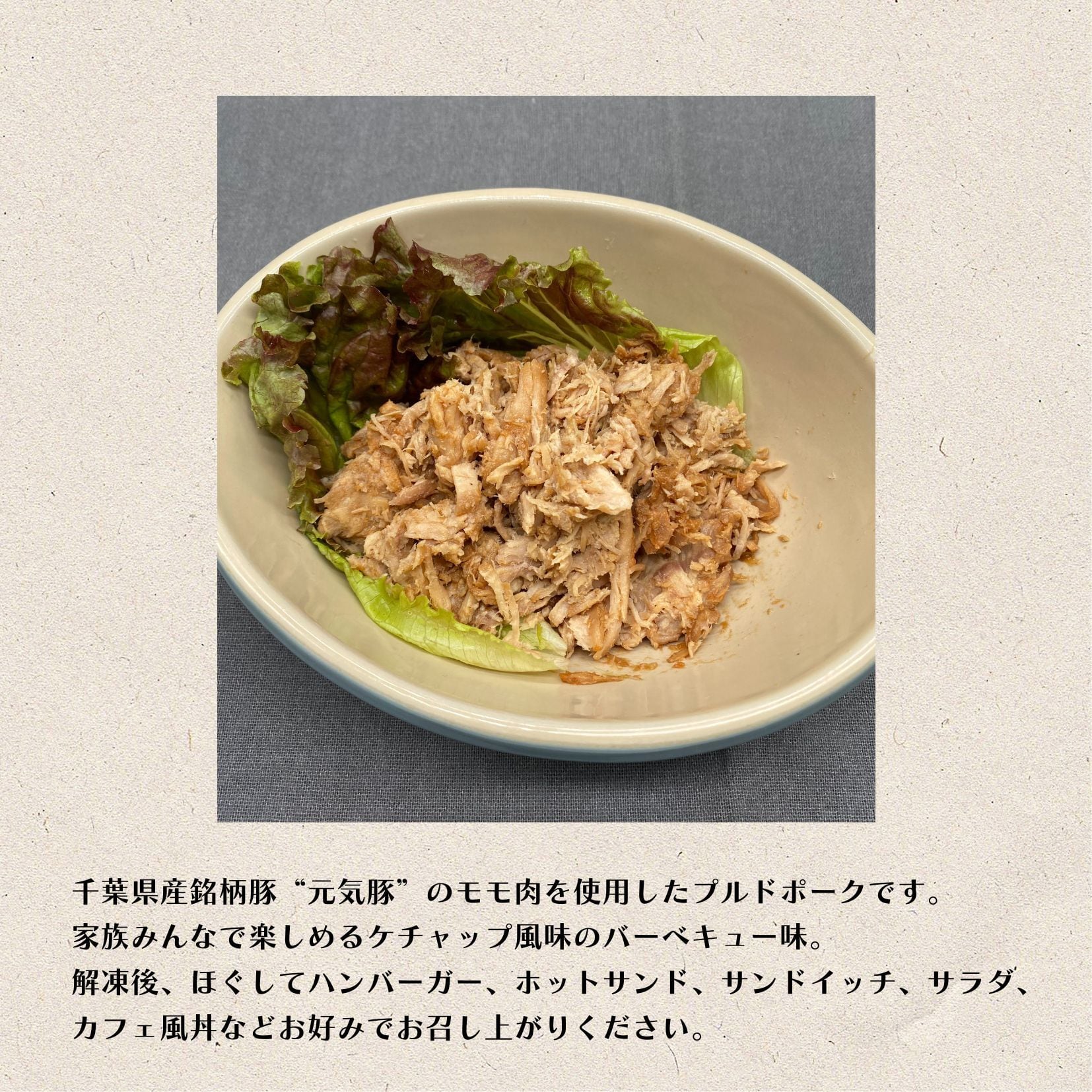 千葉県多古町で伸び伸びと育った、旨味と甘みが詰まった美味しい「元気豚」で作られたプルドポークです。