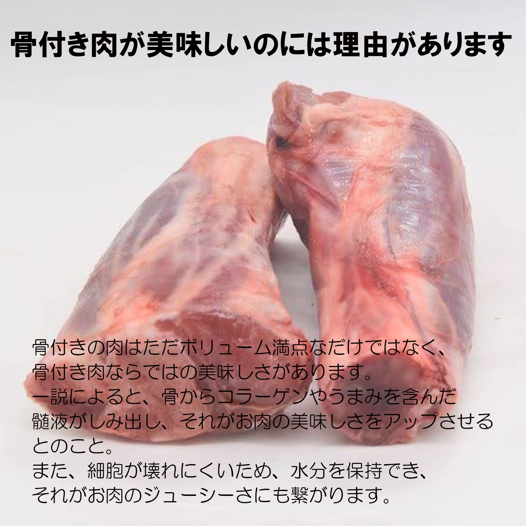お肉についたドリップ(血のような液体)をキッチンペーパーなどで拭いてから調理していただければ風味よく美味しく召し上がれます。